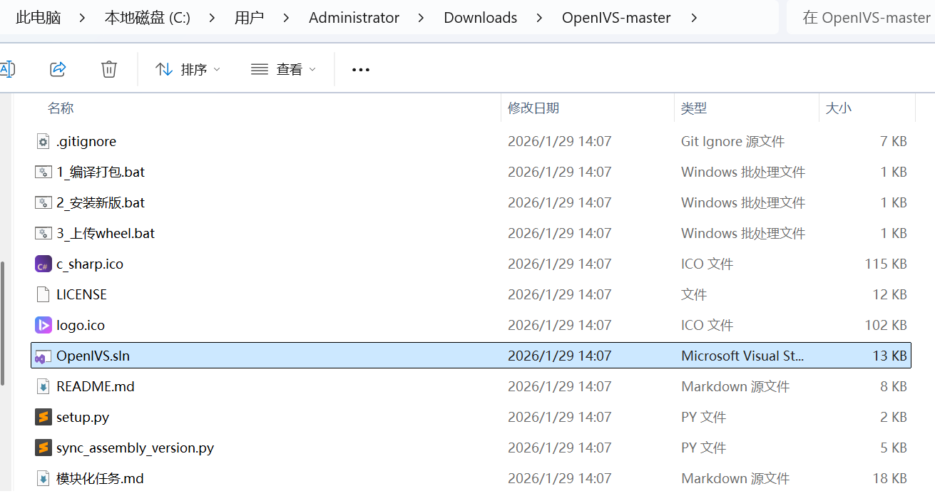 下载完成之后,解压到本地,打开OpenIVS.sln文件: